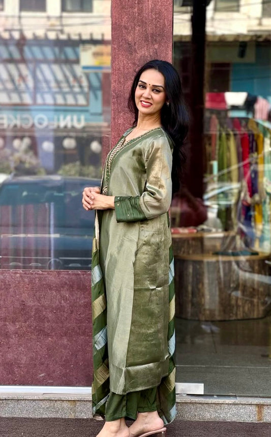 Green Tissue Silk Salwar Suit