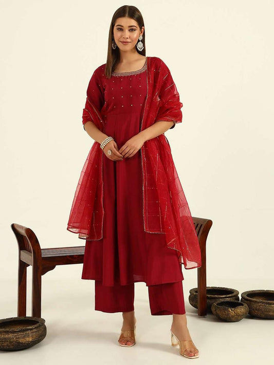 Maroon Red Viscose Chanderi Anarkali Salwar Suit